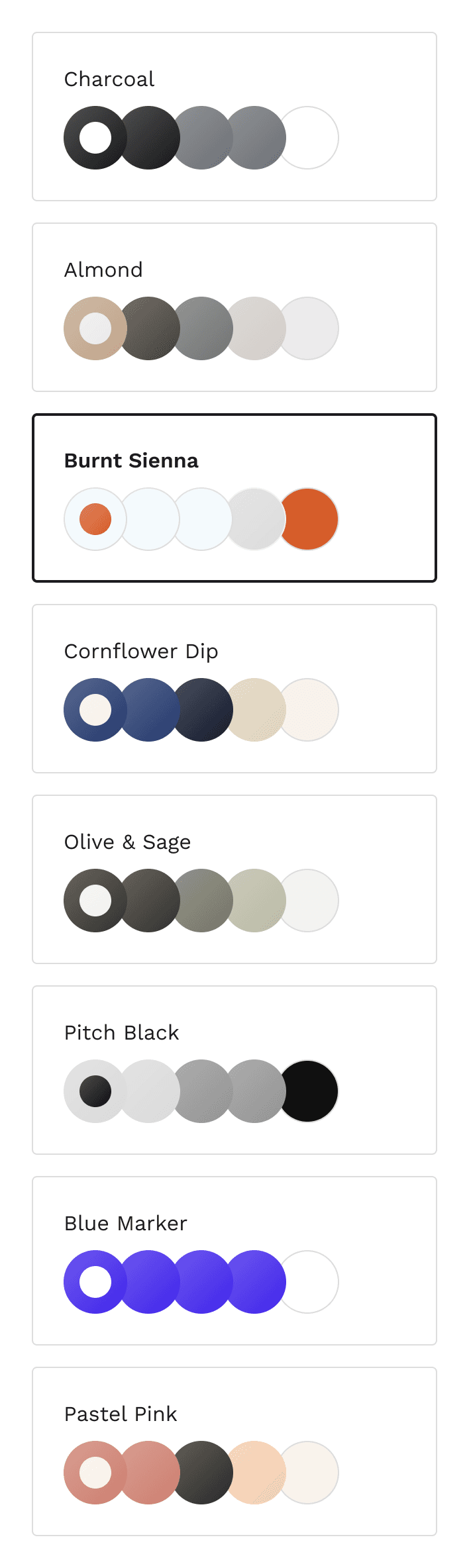 Choose a color palette or make your own and transform the look of your whole site in a minute.
