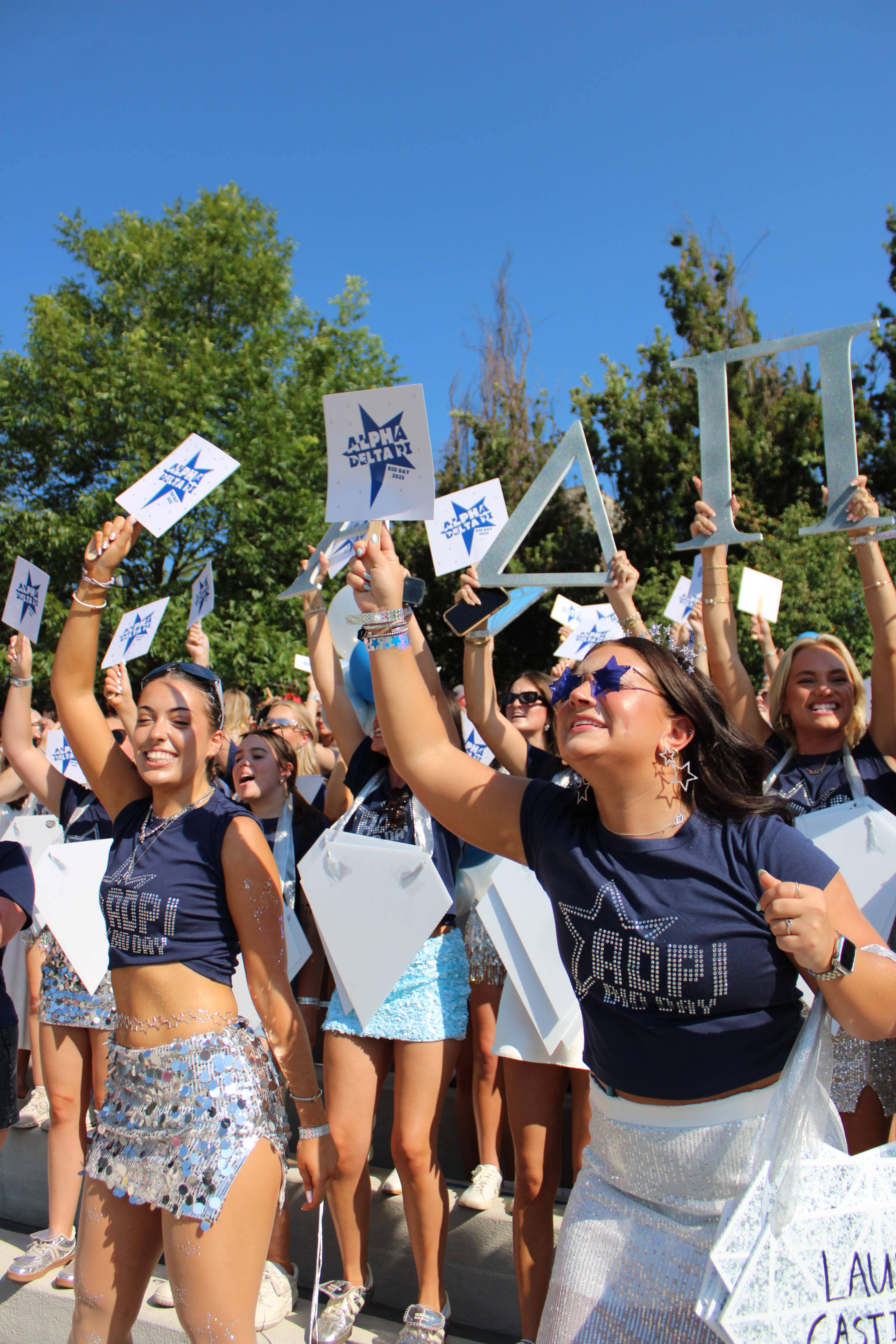 After executing an extremely successful two weeks of marketing during the formal recruitment period, the marketing team and I at Alpha Delta Pi - Delta Delta were given the opportunity to collaborate with The Party Animals baseball team. Six of our girls were able to dance on the field with a handful of the players after a run was scored. This was such an incredible experience and the perfect way to end our busiest time of marketing!
