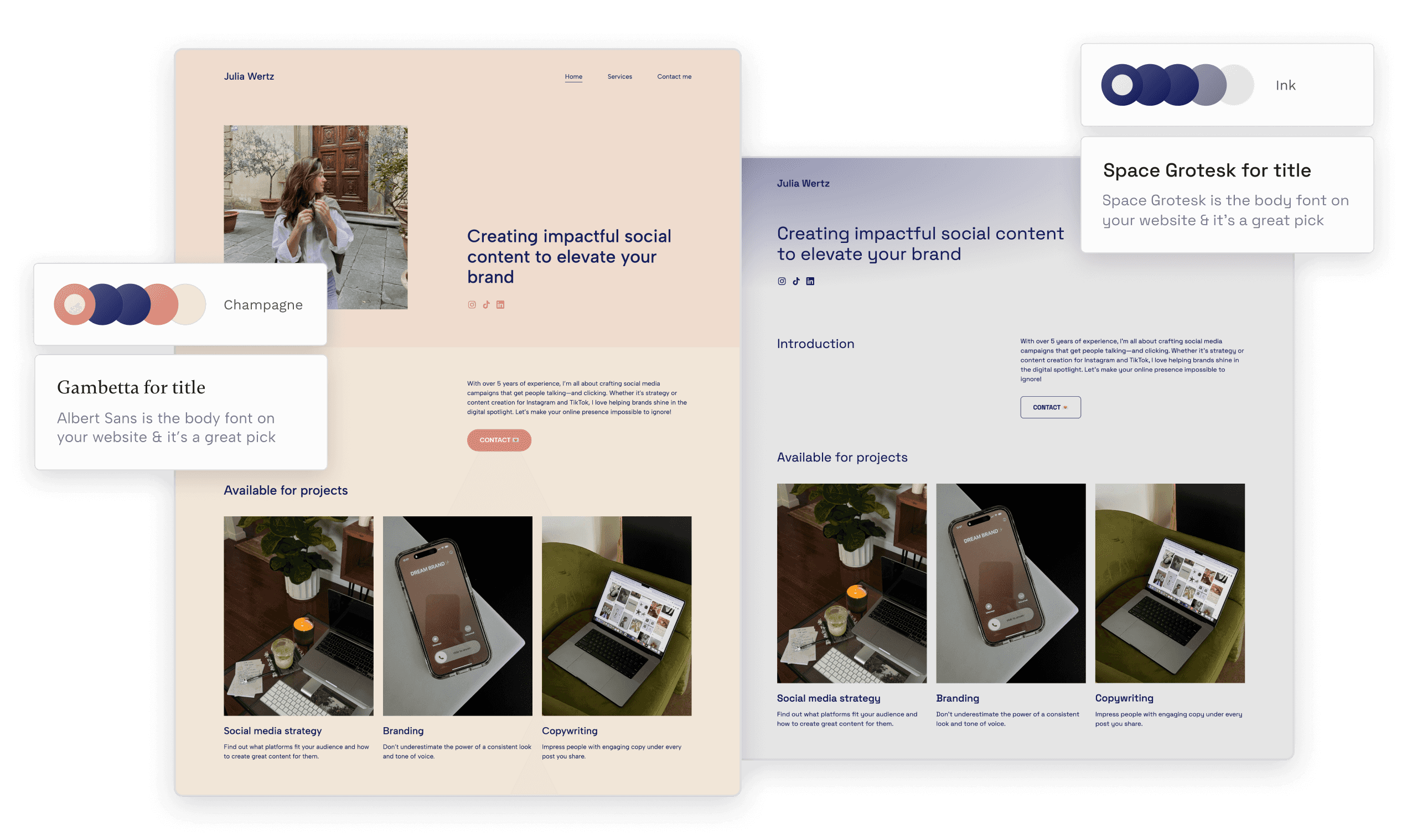 We designed some pretty templates – so users don't have to. These help to give every website a professional, polished look. Yet, there are no two Copyfolio sites that are alike. Users can customize theirs with color palettes, fonts and a variety of templates, or by adding a customized browser icon and domain, images, mockups & more.