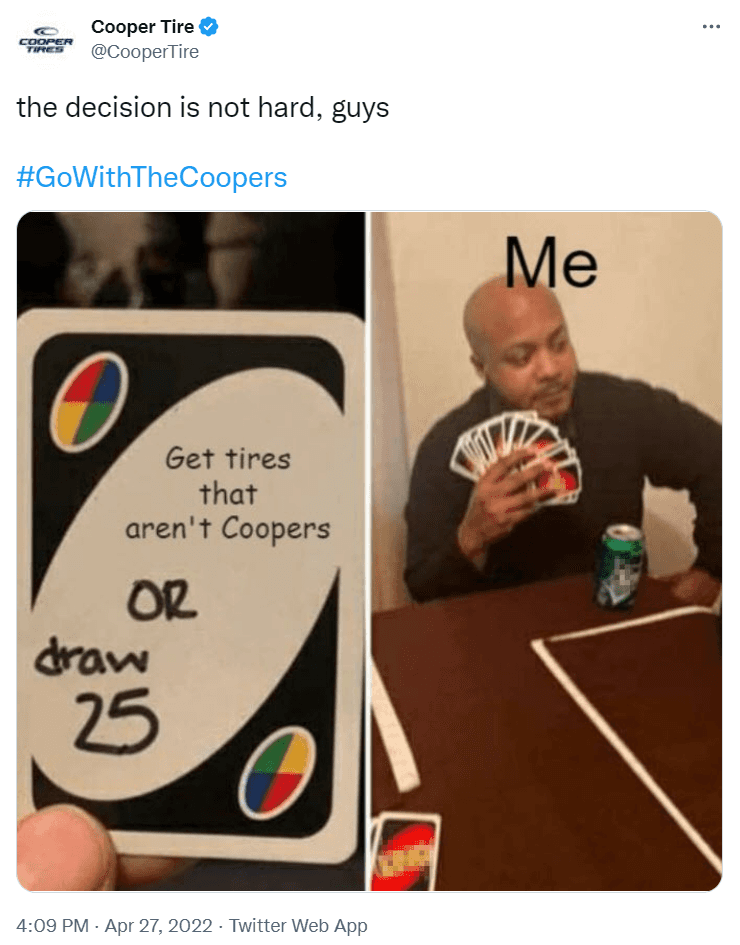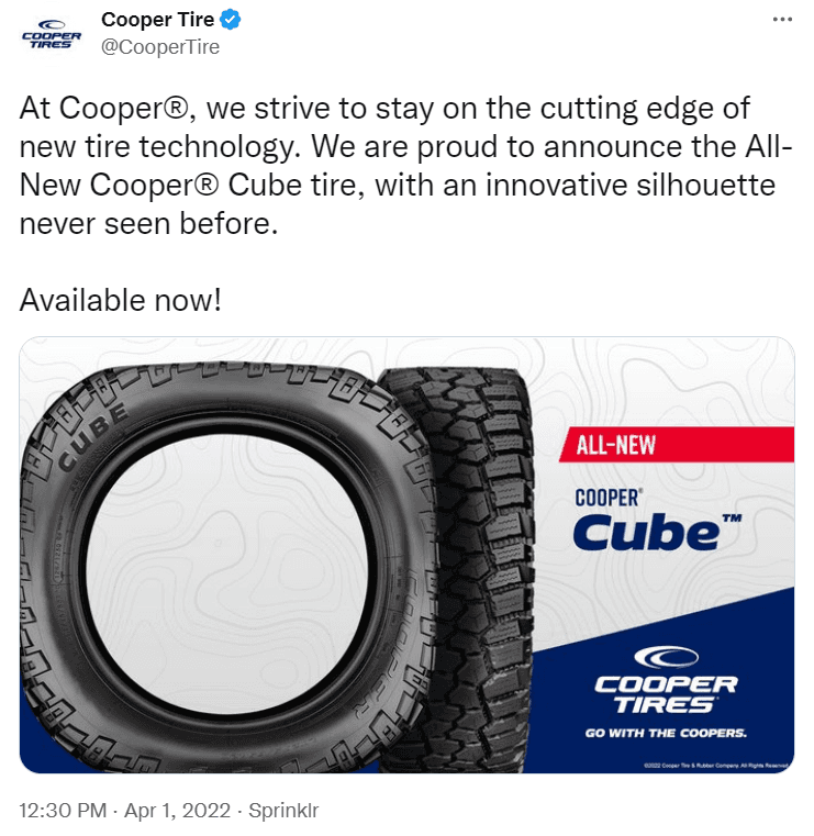 Across Cooper Tire social channels, our engagement rate went up over 40% in 2021 and 2022 compared to the previous two years. We saw over a 10% uptick in follower count as well as up to 4% increase in both reach and impressions. The moral of the story: consistent activity focused on accessible and engage-able content is king.