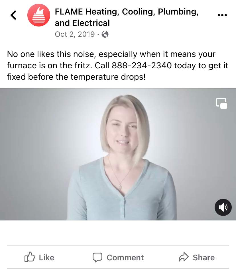 FLAME, a Detroit-based HVAC company, ran a video-based campaign predicated on fall furnace replacement ahead of cold Michigan winters. Their voice was friendly, informative, positive and helpful. The ask for the social campaign was to avoid inundating consumers with unnecessary info while reminding them of the importance associated with heating and cooling upkeep.