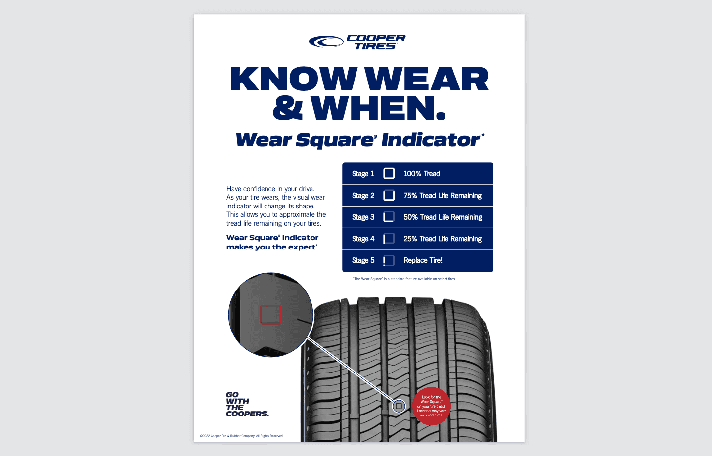 Aside from social media responsibilities at Cooper Tire, I also assisted with copywriting for marketing materials, including but not limited to: Marketing flyers, dealer one-pagers, website banners, YouTube video descriptions, paid social advertisements and Amazon Brand Store posts. This is an example of a flyer we produced for Cooper Tire's Wear Square™ Indicator. For more samples of my copy work at Cooper, please feel free to contact me.