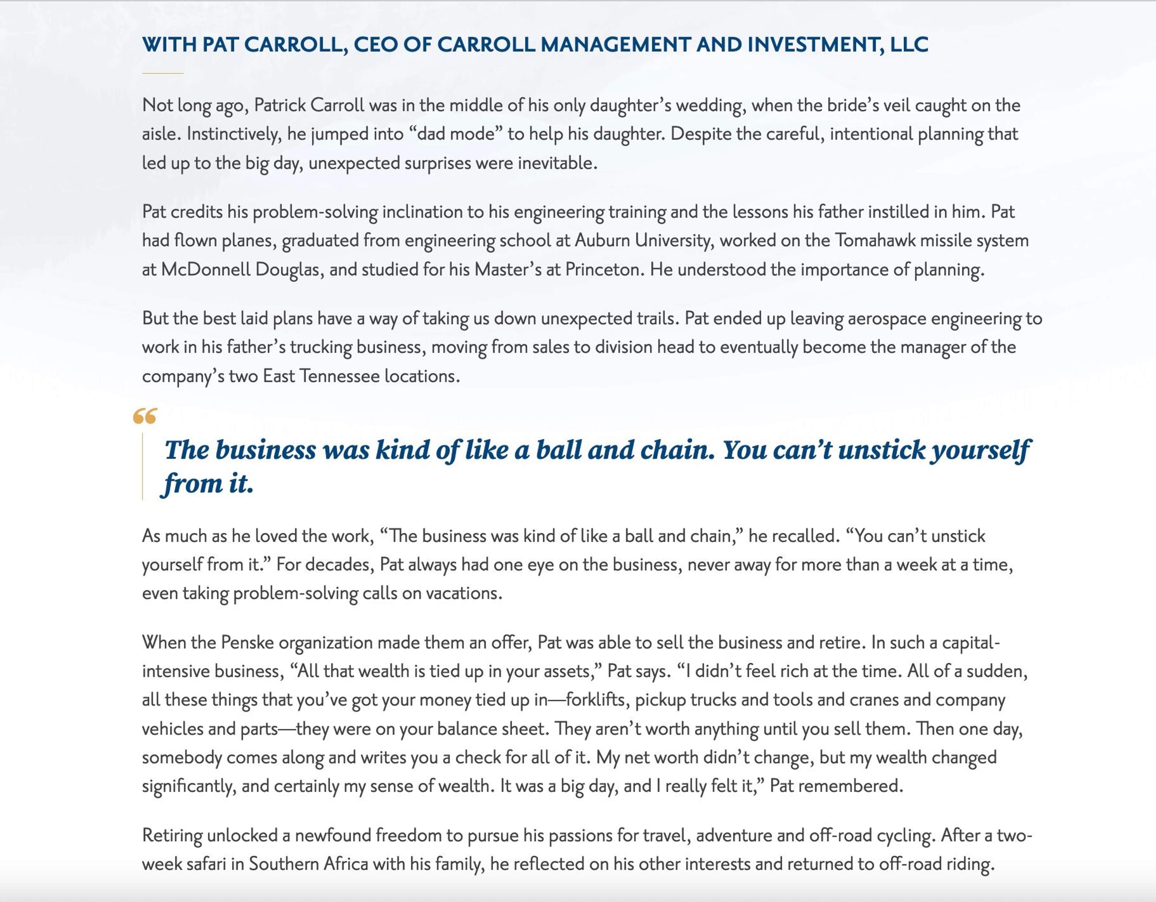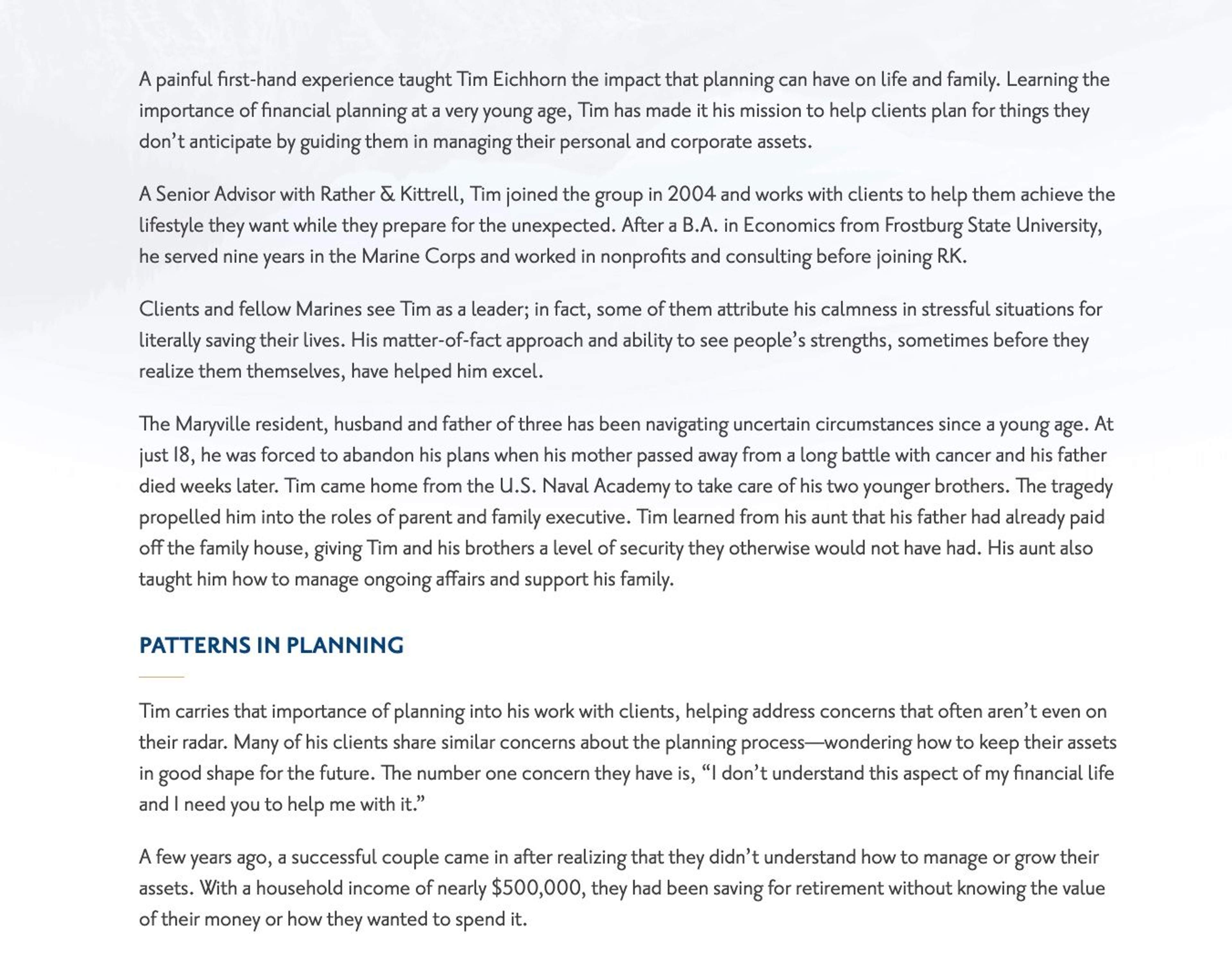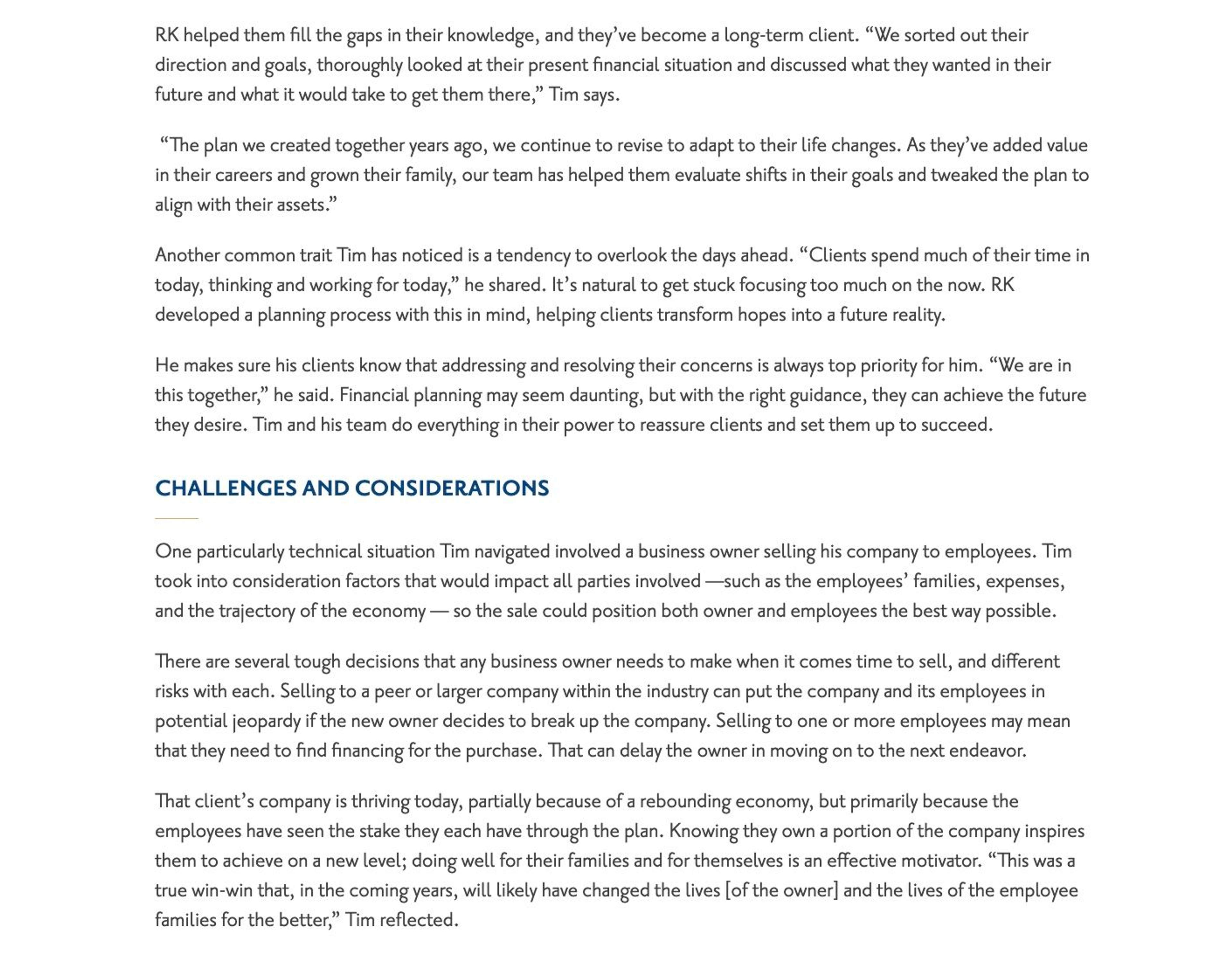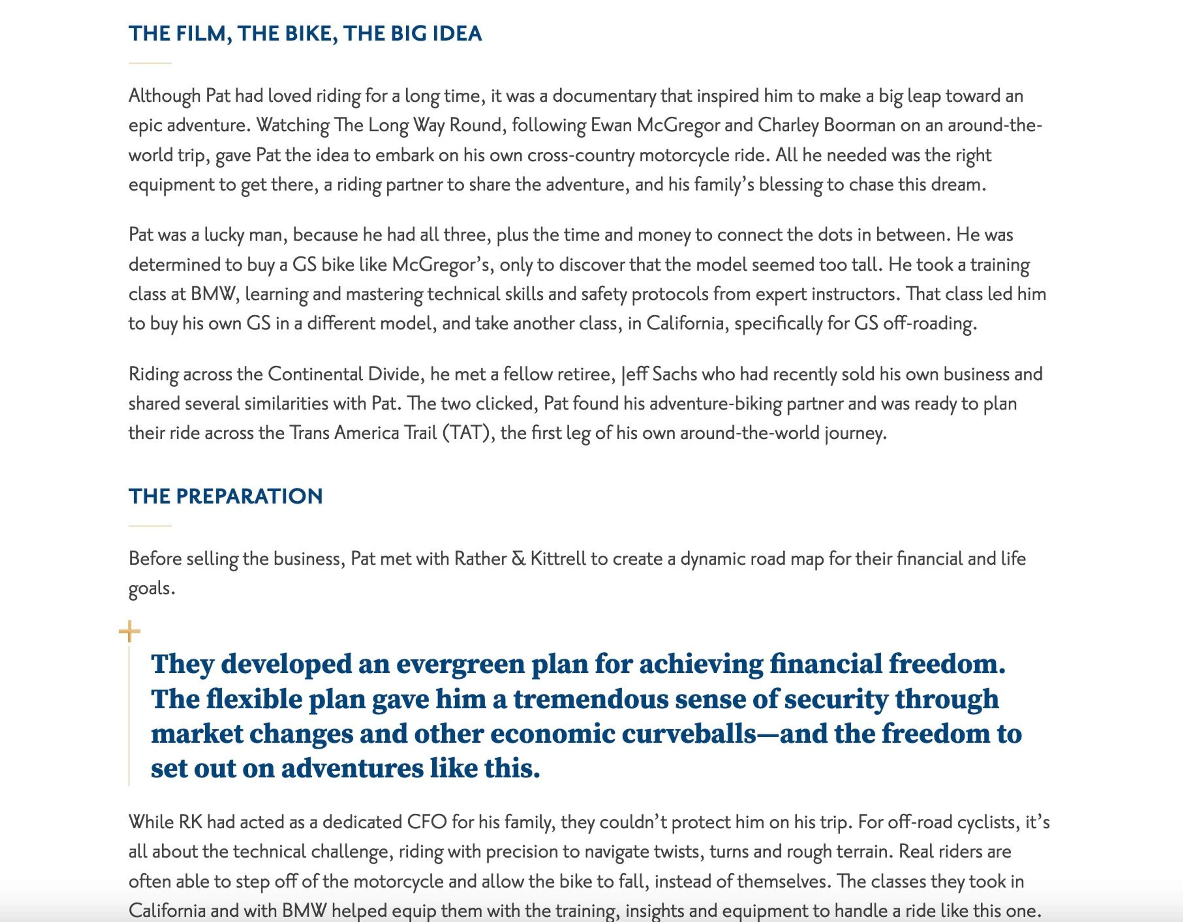 I planned to interview Rather & Kittrell leadership, create compelling stories about what drove them to find careers in financial advisory and complete the piece with stories from their successful clients. I aimed to paint a picture of the personalities behind the financial planning firm, the experienced mentors who manage clients’ wealth and showcase the benefits their customers are awarded for partnering with RK advisors.