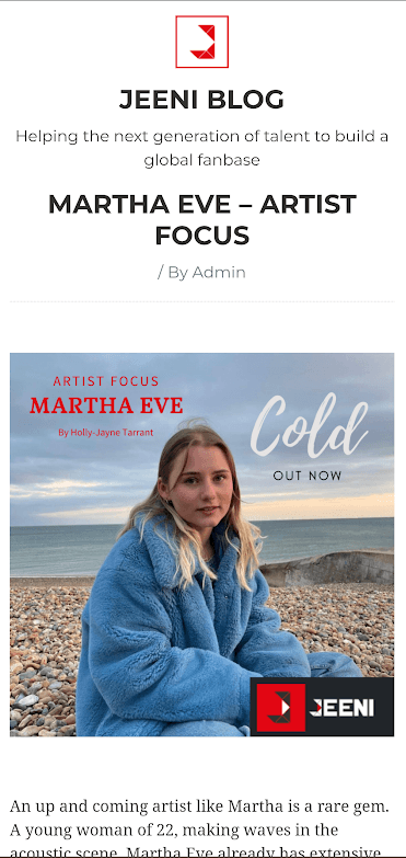 This project was a one-off blog post for Jeeni's Artist Focus series. The goal of this blog post was to improve sales of Martha Eve's single 'Cold' and to grow online engagement of the Artist Focus series. Keeping to the original Artist Focus format was a requirement by Jeeni which led to some limitation on the structure of the blog post.