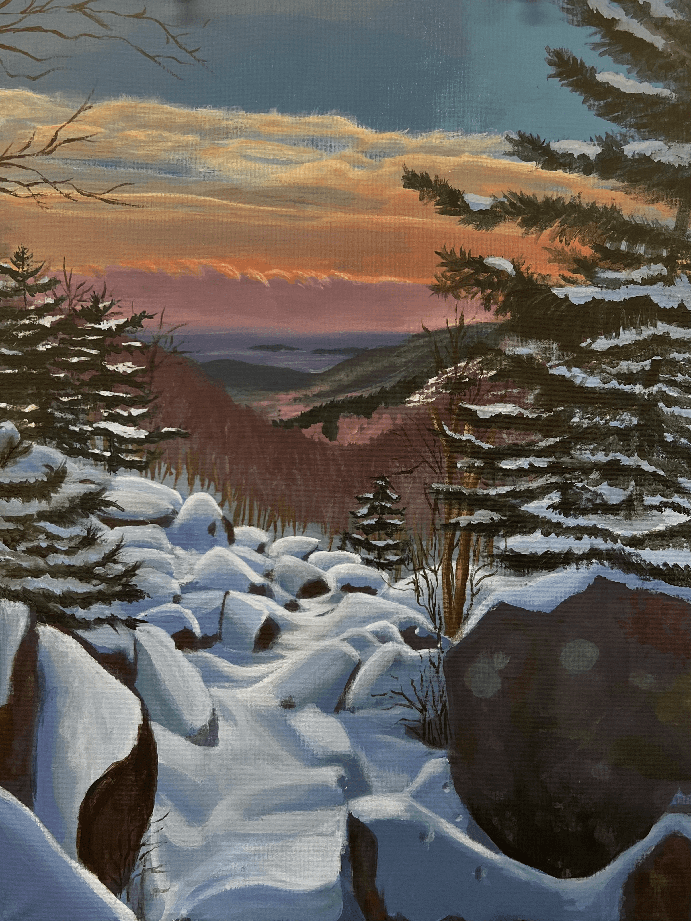 Winter Sunset in Acadia, 2023, Acrylic on Canvas